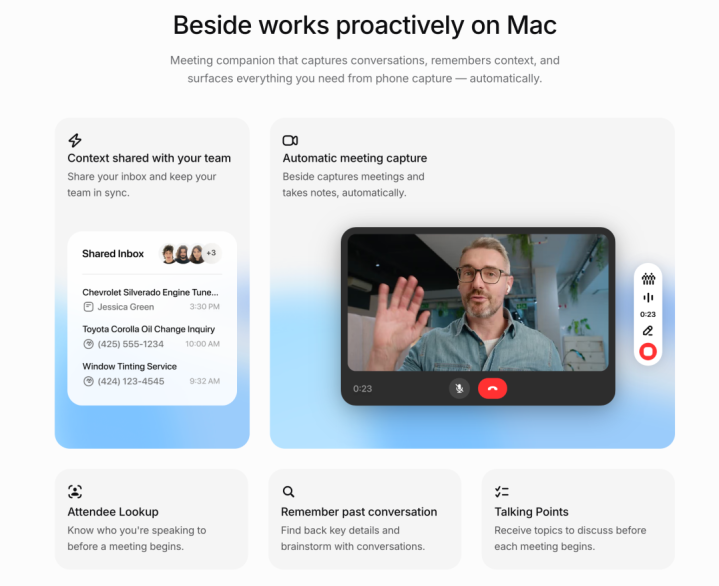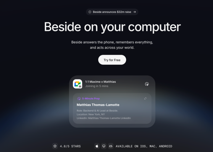 Beside的故事其实从18个月前就开始了,只是大多数人并不知道。当时他们以M1的名字悄悄运营,专注于打造一个AI接待员来处理电话和短信。我觉得这种低调的策略非常聪明。在当今这个人人都急于发布产品、抢占眼球的时代,Beside选择先埋头打磨产品,用实际效果说话。