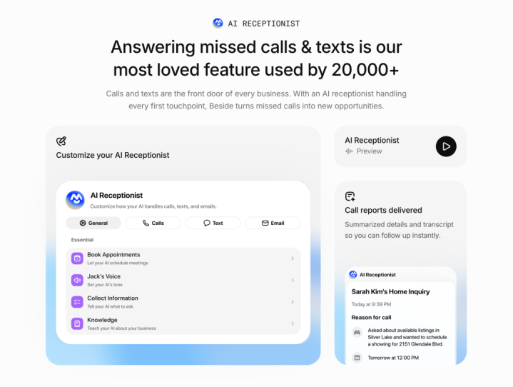 这种来自真实世界的洞察,让Beside在产品设计上与众不同。他们不是坐在办公室里想象用户需要什么,而是真正理解这些用户的日常挣扎。承包商在工地上,双手沾满泥土或油漆,无法立即接电话。房地产经纪人在开车带客户看房,错过了另一个潜在客户的来电。美发沙龙老板在给客户做头发,听到电话响起却无法离开。这些场景中,每一通未接来电都意味着潜在的收入损失。