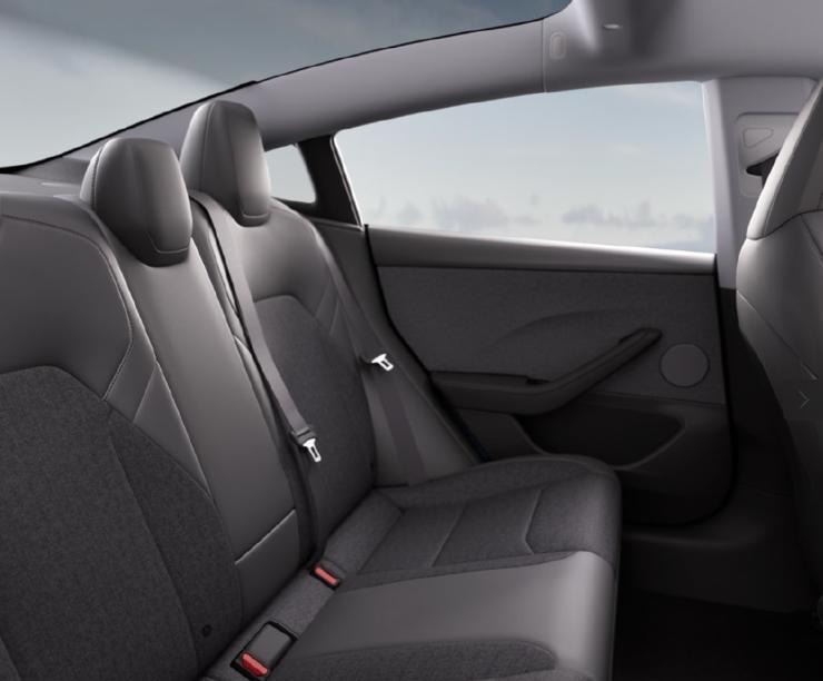 特斯拉Model 3后排座椅 · 展示Model 3织物材质的后排座椅