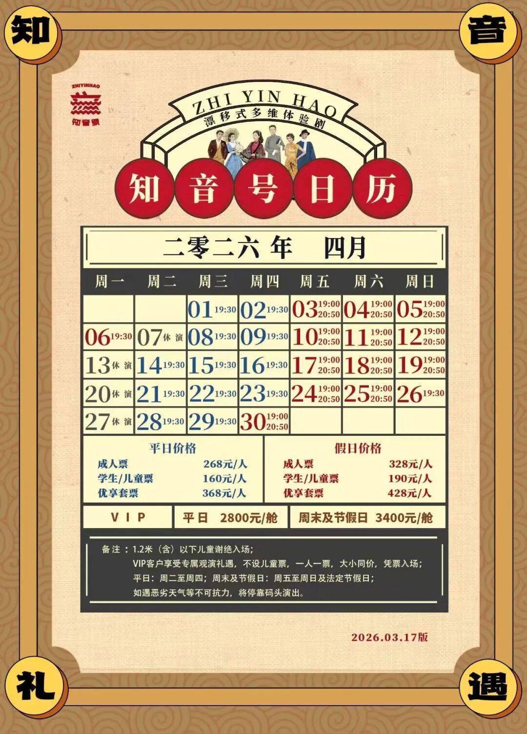 注:部分场次会进行季节性调整,请在购票前再次确认演出排期。