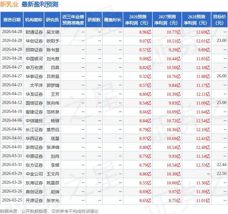 证券之星消息,2026年4月28日新乳业(002946)发布公告称公司于2026年4月28日接受机构调研,中信证券、长江证券、太平洋证券、平安证券、华安证券、华西证券、西南证券、国信证券、银河证券、国盛证券、长城基金、浙商证券、光大证券、华创证券、华泰证券、中邮证券、广发证券、中金公司、开源证券参与。