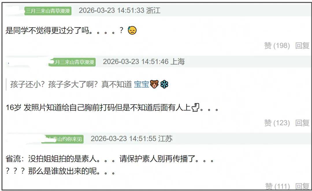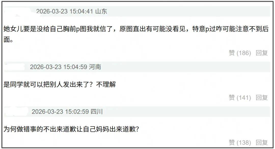 另外,钟丽缇文章中的那句“孩子还小”实在让人无语至极。考拉今年已经16岁了,实在称不上是一个孩子。更何况,钟丽缇口中的“没有意识到边界问题的孩子”记得将自己的胸前打码,却不记得给上厕所的同学打码。事情发展到现在,考拉还躲在妈妈身后,一声不吭,连个道歉都没有,着实让人愤慨。