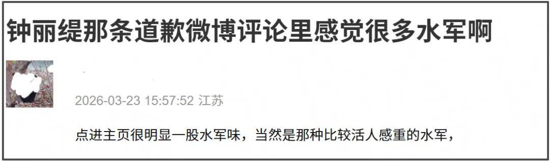 一眼望去,钟丽缇这篇道歉长文的评论区堪称大型水军洗白现场。这下子真看出是急了,连真实评论都不敢看了。可群众的眼睛是雪亮,即使是活人感十足的水军也依旧是水军,人机味儿太重了,也难怪网友直呼“买这么多水军”。