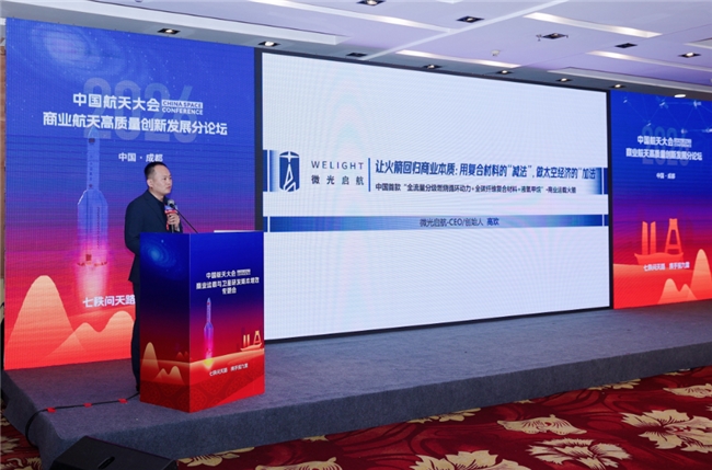 大会期间,微光启航创始人兼CEO高欢发表了题为《让火箭回归商业本质:用复合材料的“减法”,做太空经济的“加法”》的主题演讲。演讲从火箭的物理本质与经济本质出发,系统阐述了公司“以材料革新重塑经济边界”的技术路线与商业模式。