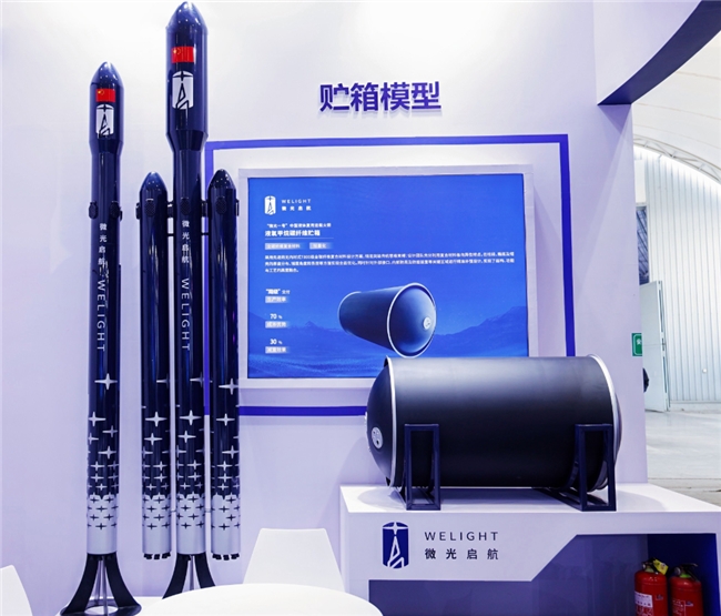 图|微光一号全碳纤维运载火箭模型(左)+全碳纤维贮箱模型(右)