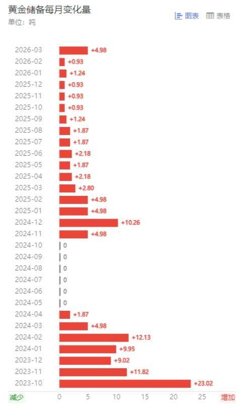 最新数据显示,我国央行已连续17个月增持黄金。即便在三月市场剧烈震荡的阶段,增持力度反而较二月进一步加码,单月增持黄金4.98吨,买入力度重回阶段高点。